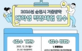 순천 박인석 기자2025. 12.23[AI 호남뉴스]순천시는 겨울방학을 맞아 대학생들에게 행정 현장 경험의 기회를 제공하기 위해 ‘2026년 겨울방학 대학생 직장체험 연수생’을 모집한다고 밝혔다. 접수 기간은 12월 29일부터 31일까지이며, 선발 인원은 총 25명이다. 신청 대상은 공고일(12월 22일) 기준 순천시에 주민등록을 두고 있는 대학교 재학생 또는 휴학생이면 지원할 수 있다. 다만, 현재 취업 중이거나 과거 행정인턴직장체험 참여 이력이 있는 경우에는 신청이 제한된다. 선발된 연수생은 2026년 1월 19일부터 2월 13일까지 4주간 순천시청 ...