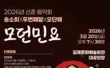 김제 박인석 기자2026. 03.06[AI 호남뉴스]전통국악, 민요, 판소리의 정서와 현대 음악의 감각을 융합한 '송소희X두번째달X오단해 모던민요'가 오는 20일 오후 7시 30분 김제문화예술회관 대공연장에서 펼쳐진다. 이번 공연은 K-POP 중심의 대중음악이 전 세계적으로 확산된 한국 고유의 정체성을 지닌 민요, 판소리 전통예술의 새로운 존재 방식을 제시하고 전통의 맥을 잇는 국악인 송소희, 오단해와 국내 최초로 에스닉 퓨전 음악을 선보인 밴드 두번째달이 의기투합해 전통과 현대, 민속과 세계음악의 경계를 허물고 새로운 예술적 언어를 만들어 내는 공연이다. 특히...