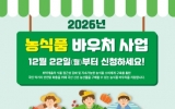 김제 박인석 기자2025. 12.17[AI 호남뉴스]김제시는 취약계층의 식품 접근성을 강화하기 위해 “2026년 농식품바우처 사업”을 추진해 지속가능한 농식품 소비 체계와 시민 먹거리 안전망을 구축할 계획이라고 밝혔다. 2026년 농식품 바우처 사업대상은 중위소득 32% 이하 생계급여 수급 가구 중 기존 임산부, 영유아, 청소년 포함 가구에 34세 이하 청년가구(1992. 1. 1. 이후 출생자)까지 확대돼 보다 많은 취약계층이 혜택을 받을 수 있게 됐다. 또한, 사업 기간도 작년 대비(‘25년, 3~12월) 2개월 확대된 1월부터 12월까지 연중 추진됨에 따라 ...