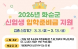 [AI 호남뉴스]화순군은 2026학년도 초‧중‧고등학교 신입생 가정의 교육비 부담을 완화하고 보편적 교육복지를 실현하기 위해 입학준비금 1인당 20만 원을 화순사랑상품권으로 지원한다고 27일 밝혔다. 지원 대상은 사업 기간 내 신청일 기준 화순군에 주민등록을 둔 초‧중‧고등학교 1학년 입학생으로, 타 시‧군에서 전입한 1학년 학생도 포함된다. 다만, 다른 법령 또는 조례에 따라 입학 관련 비용을 지원받은 경우에는 중복 지원이 제한된다. 사업 기간은 2026년 3월부터 11월까지이며, 특히 3월 3일부터 3월 13일까지를 집중 신...
