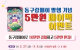 전라남도 박인석 기자2026. 02.24[AI 호남뉴스]광주 동구는 지역상권 활성화와 소비 촉진을 위해 동구 지역사랑상품권 ‘광주 동구랑페이’ 발행을 기념한 5만 원 페이백 이벤트를 추진한다고 밝혔다. 이번 이벤트는 오는 27일부터 오는 3월 6일까지 진행된다. 참여를 희망하는 주민은 이벤트 기간 내 동구랑페이 가맹점에서 동구랑페이카드로 10만 원 이상 결제한 뒤, 관련 영수증과 동구랑페이 실물 카드를 지참해 동구청 일자리경제과를 방문하면 응모할 수 있다. 참여자 가운데 총 100명을 추첨해 동구랑페이 선불카드 5만 원권을 지급할 예정이며 응모와 경품 수령은 1인 1회...