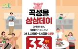 곡성 박인석 기자2026. 02.23[AI 호남뉴스] 전남 곡성군은 3월 3일 삼겹살데이를 맞아 곡성군 공식 온라인 쇼핑몰 ‘곡성몰’에서 ‘삼삼데이 특별전’을 운영한다고 23일 밝혔다. 이번 특별전은 축산물 소비가 증가하는 시기에 맞춰 지역 축산농가의 판매 기반을 확대하고, 소비자에게는 우수한 지역 축산물을 합리적인 가격에 제공하기 위해 마련됐다. 참여업체의 자체 할인과 곡성군의 추가 할인 지원을 결합해 최대 33% 할인 혜택을 제공한다. 이번 행사에는 5개 업체가 참여해 한우, 흑돼지, 떡갈비, 유정란 등 총 27개 품목을 선보인다. 곡성몰 내에는...