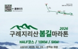 구례 박인석 기자2026. 02.23[AI 호남뉴스]전남 구례군은 아름다운 자연환경을 배경으로 한 ‘제1회 구례 지리산봄길 마라톤대회’가 오는 5월 2일 구례공설운동장에서 개최된다고 밝혔다. 이번 대회는 오마이뉴스 광주전라본부와 구례군육상연맹이 주최·주관하고 구례군이 후원하는 행사로 마라톤 종목 저변 확대와 구례 지역 홍보를 위해 마련됐다. 대회종목은 하프코스(21.0975km), 10km, 5km 총 3개 부문이다. 참가자들은 오전 8시 30분부터 순차적으로 출발해 지리산의 봄 풍경을 따라 달리게 된다. 참가 신청은 2월 23일부터 공식 홈페이지를 통해 접수를...