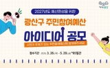 완도 박인석 기자2026. 03.31[AI 호남뉴스]광주 광산구가 지역 문제를 해결할 시민의 아이디어를 담은 주민참여예산 사업 제안을 공개 모집한다. 공모는 내년도 주민참여예산 중 3억 5,000만 원 규모의 주민참여형 사업을 대상으로 한다. 생활 불편 해소, 안전사고 예방, 시민 복리 증진 및 삶의 질 향상, 마을 현안 해결, 지역발전 등 광산구 지역 전체를 대상으로 하는 제안을 받는다. 단, 광산구 지역에 속하지 않은 사안, 중장기적‧대규모 예산 투자가 필요한 사업, 특정인 또는 단체의 이익을 위하거나, 갈등 소지가 있는 사업 등은 제외된다. 광산구 주민, 광산...