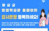 화순 박인석 기자2026. 02.12[AI 호남뉴스]화순군은 12일 지역 평생학습 활성화와 다양한 학습 프로그램 운영을 위해 평생학습관 홈페이지를 통해 ‘강사은행’ 등록을 상시 접수한다고 밝혔다. 강사은행은 평생학습 분야에서 활동 중이거나 활동을 희망하는 강사의 전문 분야, 강의 경력, 자격 사항 등을 체계적으로 관리하는 인력풀 제도다. 등록된 강사는 향후 평생학습관 및 관내 평생교육기관에서 강사 섭외 등에 활용된다. 등록 대상은 인문·교양, 문화·예술, 건강·생활체육, 인지·치유, 디지털·미디어 등 평생학습과 관련한 다양한 분야의 강의가 가능한 강사로, 해...