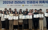 전라남도 박인석 기자2025. 12.03[AI 호남뉴스]전라남도는 3일 도민 인권교육을 통해 생활 속 인권 존중문화 확산에 앞장설 신규 인권강사 15명을 위촉했다. 전남도는 매년 도민의 인권 의식 제고와 인권교육 수요 증가에 대응하기 위해 인권강사 양성 프로그램을 운영하고 있다. 올해는 전남사회서비스원에 위탁해 과정의 전문성을 강화했다. 이번 교육 과정은 ▲이론 교육 36시간 ▲강의기법 교육 18시간 등 총 54시간으로 구성해 인권에 대한 전문성과 교육 실무 역량을 동시에 높이는 데 중점을 뒀다. 위촉식에서는 권영철 인권강사가 ‘인권의 가치를 수호하는 사람들’을 ...