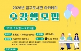 익산 박인석 기자2026. 02.10[AI 호남뉴스]김제시 금구도서관은 지역 주민들의 자기 계발과 문화 향유 기회를 확대하기 위해 2026년 금구도서관 아카데미 수강생을 오는 3월 6일까지 선착순 모집한다고 밝혔다. 이번 강좌는 디지털 교육부터 감성적인 예술, 인문학 특강까지 다양한 분야로 구성됐다. 주요 강좌는 ▲실생활에 활용할 수 있는‘생활 속 AI활용’과‘귀로 보는 건강관리, ▲우리동네의 풍경을 직접 펜과 물감으로 담아내는‘어반스케치’, ▲미술사 흐름으로 배우는‘명화이야기’, ▲그림책을 통해 인지 능력을 높이고 정서적 교감을 나누는‘시니어 인지발달 책놀이’...