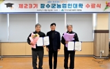 장수 박인석 기자2025. 12.03[AI 호남뉴스]장수군은 2일 장수군농업기술센터에서 최훈식 장수군수와 최한주 군의회 의장, 수료생 80여 명이 참석한 가운데 ‘제23기 장수군 농업인대학 수료식’을 개최했다고 밝혔다. 올해 장수군 농업인대학은 지난 3월에 개강해 11월까지 농업인의 전문능력 향상을 위해 사과·두릅·지속가능한 치유농업 등 총 3개 과정을 편성해 교육생 132명을 대상으로 진행했다. 교육은 이론 수업과 현장 실습을 병행한 총 37회, 175시간의 체계적인 프로그램으로 구성됐으며, 이를 통해 장수농업을 선도할 수 있는 87명의 수료생을 배출했다. ...