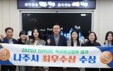 나주 박인석 기자2025. 12.02[AI 호남뉴스]전라남도 나주시가 불법광고물 정비 강화, 건전한 광고문화 확산, 폐현수막 재활용체계 구축 등 전방위적인 도시환경 개선 노력을 인정받아 ‘2025년 전라남도 옥외광고업무 평가’에서 ‘최우수상’을 수상했다. 나주시(시장 윤병태)는 이번 평가에서 폐현수막 재활용 시범사업 추진, 올바른 광고문화 기반 조성, 불법광고물 정비 등 여러 주요 항목에서 고르게 높은 점수를 받으며 최우수 기관으로 선정됐다고 2일 밝혔다. 시는 폐현수막 재활용을 위한 협약 체결, 집하장 설치 등 재활용 인프라를 구축하고 폐현수막 활용을 촉진하는 ...