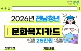 [AI 호남뉴스]광양시는 도내 청년들의 문화 향유 기회 확대와 자기계발을 지원하기 위해 ‘2026년 전남청년 문화복지카드 지원사업’ 신청 접수를 2월 9일부터 실시한다고 밝혔다. 전남청년 문화복지카드 지원사업은 전라남도에 거주하는 청년에게 체크카드 바우처 방식의 문화복지카드를 지급하는 사업으로, 1인당 연 최대 25만 원을 지원한다. 지원 대상은 19세 이상 28세 이하(1998~2007년도 출생자) 청년으로, 신청 개시일 기준 전라남도에 2년 이상 계속 거주하고(2024년 2월 9일 이전부터 도내 거주), 신청일 기준 주민등록...