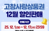 고창 박인석 기자2025. 12.01[AI 호남뉴스]고창군이 연말 지역 소비 촉진과 소상공인 매출 증대를 위해 12월 고창사랑상품권을 최대 15% 할인율로 판매한다고 1일 밝혔다. 15% 할인판매는 구매 시 선할인 10%를 제공하고, 고창사랑카드 사용 시 결제금액의 5%를 캐시백으로 추가 지급하는 방식이다. 군은 이를 통해 군민들에게 실질적인 소비 혜택을 제공하고, 지역 상권 활성화에도 기여할 것으로 기대하고 있다. 이번 12월 할인판매는 고창사랑카드는 12월17일 자정 전까지, 지류상품권의 경우 12월12일 오후 4시까지 구매할 수 있다. 지류상품권은 기...