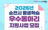 순천 박인석 기자2026. 02.05[AI 호남뉴스]순천시가 지역사회 평생학습 문화 확산을 위해 오는 9일부터 13일까지 ‘2026년 평생학습 우수동아리 지원사업’에 참여할 동아리를 모집한다고 밝혔다. 신청 대상은 공고일 기준 순천시 평생교육 포털에 등록된 학습 동아리로, 구성원이 7명 이상이고, 80% 이상 순천시민이어야 하며, 월 2회 이상 정기적인 활동을 해야 한다. 다만, 친목과 상호 교류 목적의 단순 소모임이나 영리를 목적으로 하거나 동일한 내용으로 다른 행정기관으로부터 보조를 받는 동아리 등은 신청 대상에서 제외된다. 신청 방법은 순천시 평생교육과...