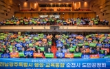 전주 박인석 기자2026. 02.03[AI 호남뉴스]순천시는 전라남도와 함께 3일 순천문화예술회관에서 전남광주특별시 행정·교육 통합 도민 공청회를 개최하고, 통합 추진의 방향과 핵심 과제를 시민과 함께 논의했다. 이날 행사에는 노관규 순천시장을 비롯해, 김영록 전라남도지사, 김대중 전라남도교육감, 강형구 순천시의회 의장, 허동균 순천교육지원청 교육장, 지역 사회단체 관계자와 시민 등 1,000여 명이 참석해 전남·광주 통합에 대한 높은 관심을 보였다. 공청회는 노관규 순천시장의 환영사를 시작으로, 김영록 도지사의 전남·광주 행정통합 추진 방안 설명, 김대중 교육감...