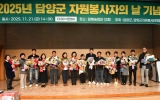 담양 박인석 기자2025. 11.25[AI 호남뉴스] 담양군은 21일 담빛농업관에서 자원봉사자 200여 명이 참석한 가운데 ‘2025 담양군자원봉사자 기념식’을 열고 올해 지역에서 활동한 자원봉사자들의 노고를 격려했다. 이번 기념식은 지역사회 곳곳에서 활동한 자원봉사자들의 헌신을 기리고 자원봉사 문화 확산을 도모하기 위해 마련됐다. 행사는 유공자 표창패 수여, 성과보고, 역량강화 교육, 화합 한마당 순으로 진행됐으며, 다양한 프로그램을 통해 참여자들의 호응을 얻었다. 이날 재난 복구, 취약계층 돌봄, 지역 환경 개선 등 여러 분야에서 활동한 자원봉사...