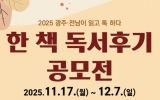 전라남도 박인석 기자2025. 11.18[뉴스채널]전남대학교 도서관은 11월 17일부터 12월7일까지 ‘2025 한 책 독서후기 공모전’을 진행한다. 이번 공모전은 ‘광주·전남이 읽고 톡 하다’사업의 일환으로, 올해의 한 책으로 선정된 김애란 작가의 『이중 하나는 거짓말』을 읽고 독서의 의미를 나누고 서로 다른 생각을 공유하기 위한 취지로 마련됐다. 공모전에는 전남대학교 재학생뿐만 아니라 광주·전남 지역민 누구나 참여할 수 있다. 자세한 사항은 전남대학교 도서관 홈페이지 공지사항을 참고하면 된다. 전문가 심사를 통해 최우수·우수·장려 등 각 부문별 수상자를 선...